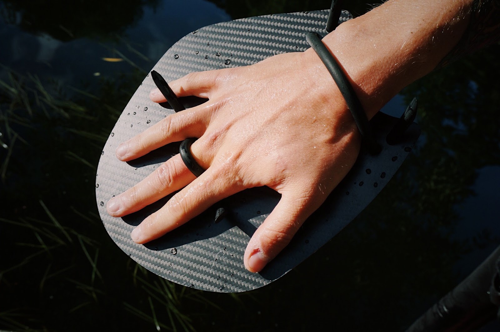 Cédric: I choose the finger paddles for two reasons: Firstly I was afraid of not being able to swim 10km properly with big paddles. Secondly I wanted to maintain a high frequency in the water to stay warm during the cold swim sections.