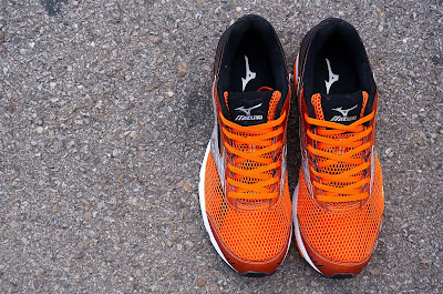 As usual Mizuno has the design laid out very nicely. I dig the overall appearance and the colour organge/black arrangement that generate a characteristic and steadfast looking shoe. |